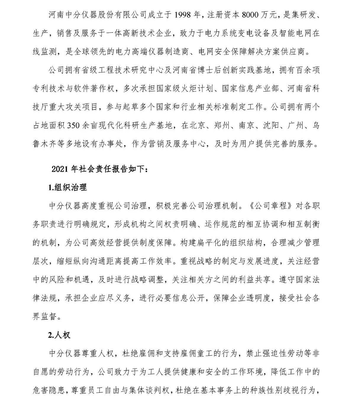 河南中分儀器股份有限公司2021年企業(yè)社會責(zé)任報告