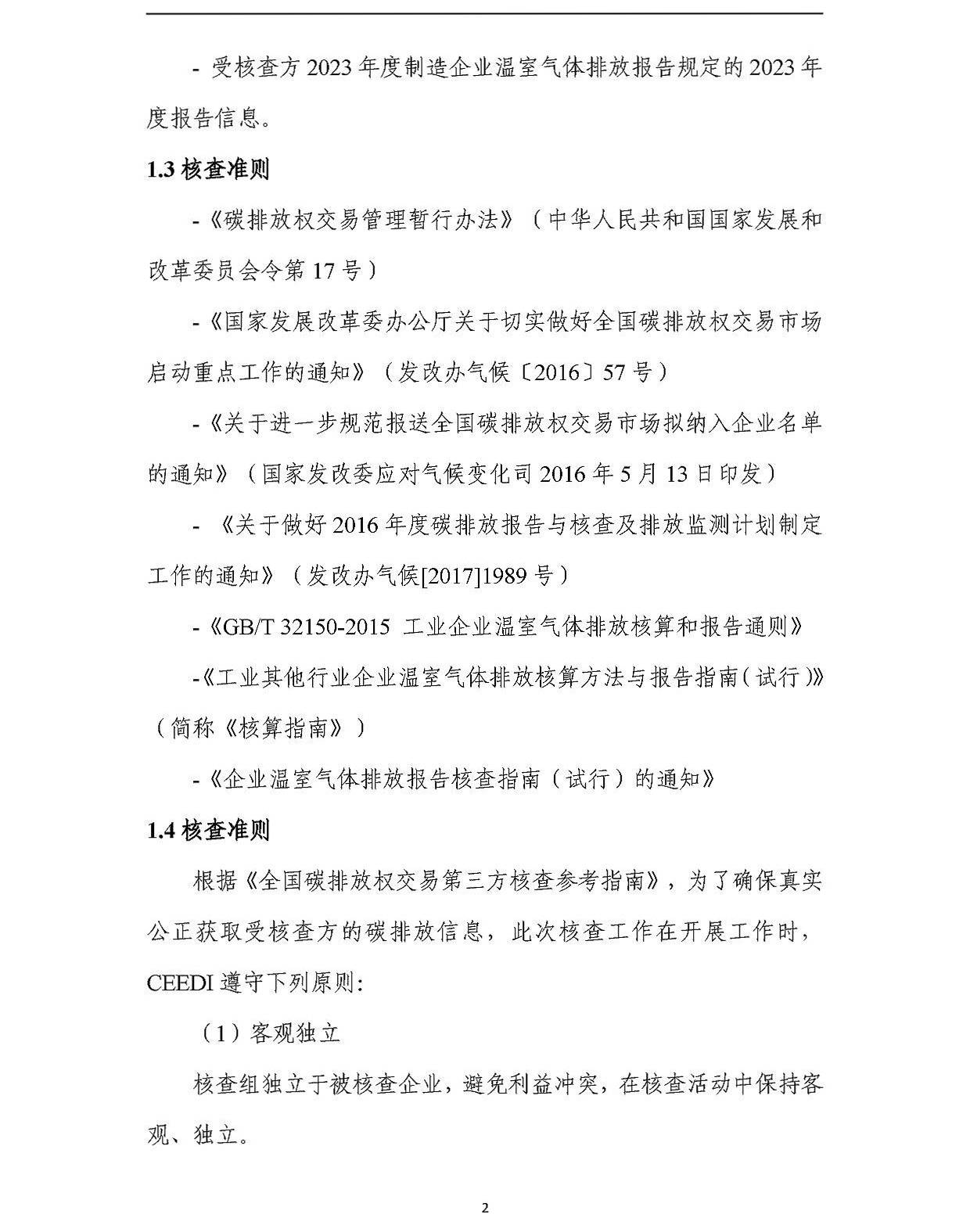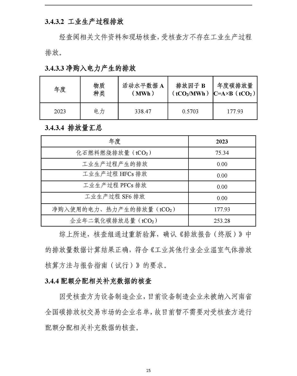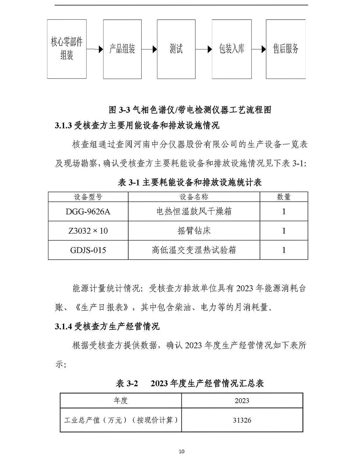 河南中分儀器股份有限公司2023年溫室氣體排放核查報告